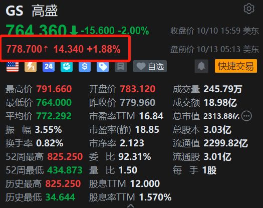 美股异动丨高盛盘前涨约2% 明日盘前放榜 分析指业绩或再超预期