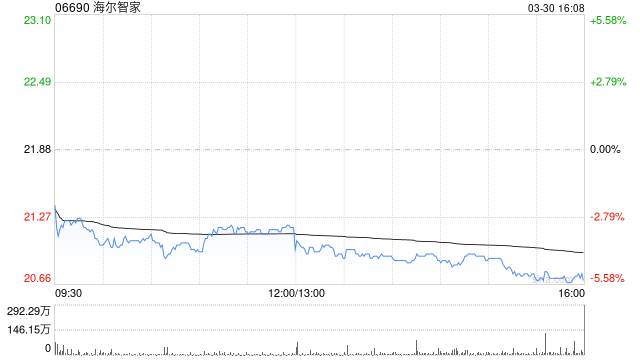 海尔智家(06690.HK)3月30日耗资5819.33万元回购270万股A股