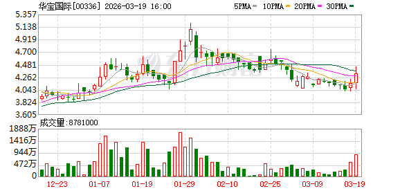 公司股价表现 - 华宝国际(00336.HK)于3月19日尾盘股价大幅上涨,涨幅接近7% [2] - 截至发稿时,公司股价上涨6.73%,报收于4.44港元 [2] - 当日成交额为3238.63万港元 [2]