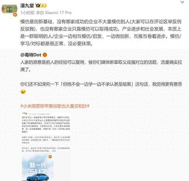 潘九堂:模仿是创新的基础,小米汽车如果未来做增程一定会借鉴理想