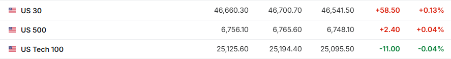 2. 截至发稿,德国DAX指数涨0.35%,英国富时100指数跌0.29%,法国CAC40指数涨0.39%,欧洲斯托克50指数涨0.05%。 | 德国DAX30 | 24.710.61 | 24,735.62 | 24,599.50 | +87.02 | +0.35% | | --- | --- | --- | --- | --- | --- | | 瑞 英国富时100 | 9,520.80 | 9.531.85 | 9.495.15 | -28.07 | -0.29% | | 法国CAC40 | 8.091.86 | 8,094.58 | 8.053.67 | +31.73 | +0.39% | | ■ 欧洲斯托克50 | 5,652.45 | 5,665.15 | 5,641.15 | +2.72 | +0.05% | 盘前市场动向 1. 10月9日(周四)美股盘前,美股三大股指期货涨跌不一。截至发稿,道指期货涨0.13%,标普500指数期货涨0.04%,纳指期货 跌0.04%。 | = US 30 | 46,660.30 | 46,700.70 | 46,541.50 | +58.50 | +0.13% ...