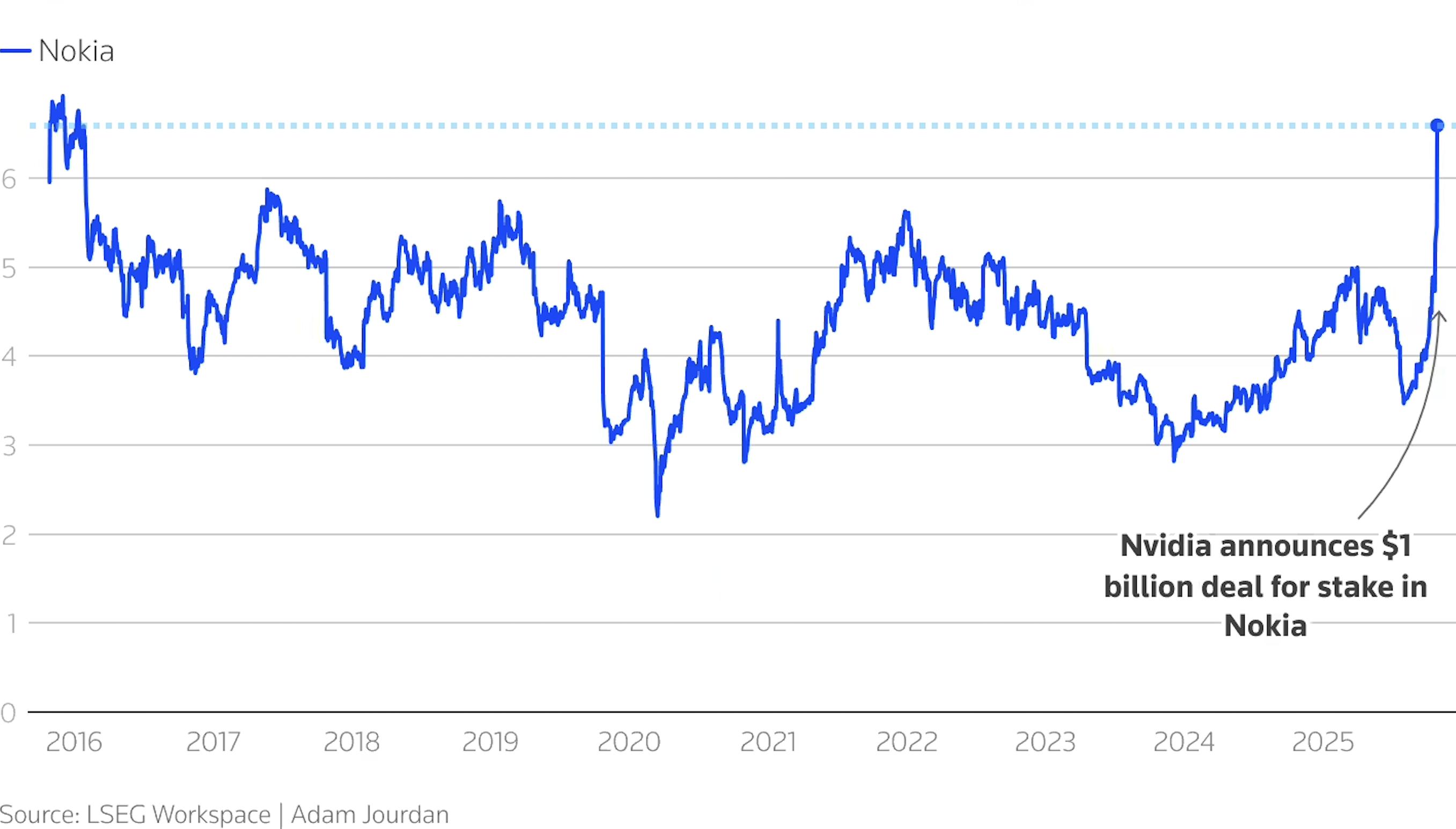 诺基亚(NOK.US)获英伟达10亿美元入股 强势跻身欧洲AI核心标的