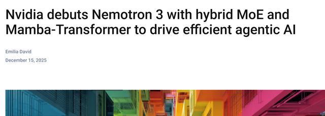 来源:环球网 【环球网科技综合报道】12月16日消息,据VentureBeat报道,英伟达近日正式推出Nemotron 3开源AI模 型系列,包含Nano、Super和Ultra三种规格。该系列凭借突破性技术架构与卓越性能表现,被定位为构 建AI智能体应用时"具有最佳准确性的最高效开源模型家族"。 据介绍,Nemotron 3系列采用突破性的混合潜在专家(MoE)架构,可支持开发者大规模构建和部署可 靠的多智能体系统。其中,Nemotron 3 Nano作为300亿参数的小型模型,每次激活最多调用30亿参数, 专为软件调试、内容摘要、AI助手工作流程及低推理成本信息检索等任务优化,是目前计算成本效率 领先的模型。相较于上一代产品Nemotron 2 Nano,其token处理吞吐量提升4倍,推理token生成效率提 高60%,显著降低了推理成本,同时依托100万token的上下文窗口,具备更强的长文本处理能力与信息 关联准确性,可高效应对多步骤复杂任务。 中等规格的Nemotron 3 Super拥有约1000亿参数,每个token最多激活100亿参数,凭借高准确性优势, 适用于各类多智能体应用场景;高端型号 ...
