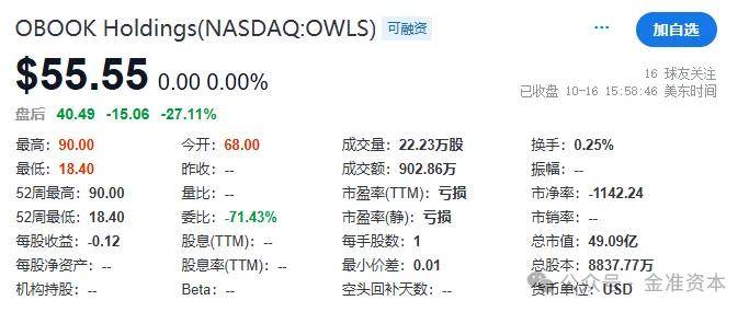 美股异动 | Obook Holdings(OWLS.US)登陆美股市场 开盘股价跌近20%