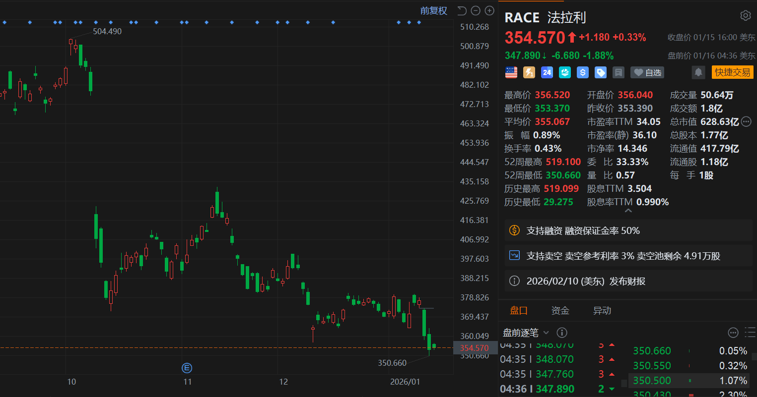 美股异动 | 法拉利盘前跌近2% 开盘或将再刷新阶段低位