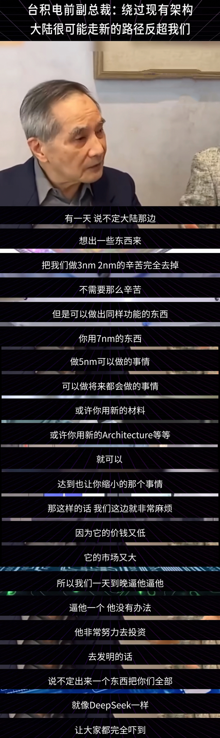 台积电前副总警告:绕过现有架构,大陆说不定走新的路径反超我们,就像DeepSeek把大家都吓到!网友:不是说不定,是一定