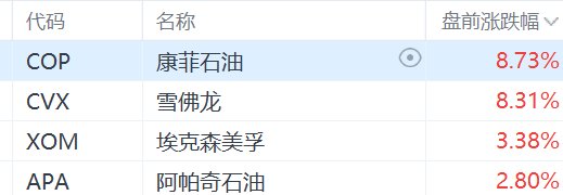 美股异动丨油气股盘前集体大涨,雪佛龙、康菲石油涨超8%