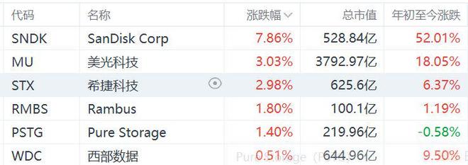 美股异动 | 存储概念普跌 SanDisk(SNDK.US)跌近10%