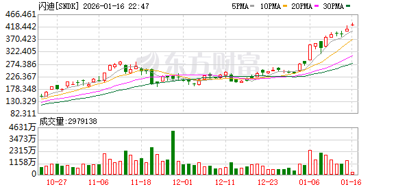 格隆汇1月16日|闪迪盘初一度涨超5%创历史新高,但随后跳水,目前已转跌。美国知名资产管理公司 ClearBridge Investments的新兴市场股票基金经理Divya Mathur表示,未来十年,随着人工智能(AI)持 续推高芯片需求,存储芯片板块将是最佳的投资选择。 | 闪迪 406.800-0.60% 分时 均线 | 盘中行情 ~ | | --- | --- | | 432020 * | 5.57% | | 427.464 | 4.45% | | 422,908 W | 3.34% | | 418.352 | 2.23% | | 413.796 | 1.11% | | 409.240 | 0.00% | | 404.684 | 1.11% | | 400.128 | 2.23% | | 395,572 | 3.34% | | 391.016 | 4.45% | | 386,460 | 5.57% | | 124万 | | | 62.23万 | | | Status in diff | | ...