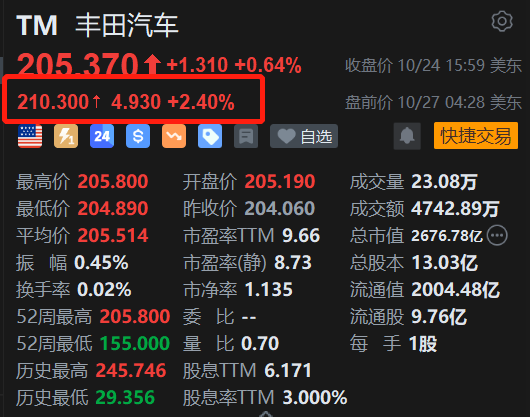 美股异动|丰田盘前涨2.4% 9月全球销量增长3% 连续九个月增长