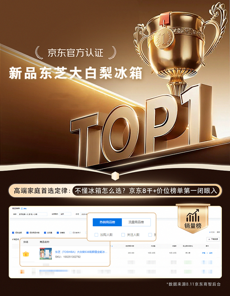 东芝高端冰箱“双11”期间在8000元以上价位段市场表现突出