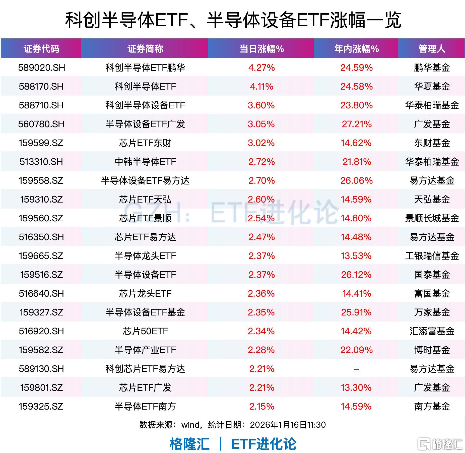 台积电财报超预期且展望乐观,科创半导体ETF、科创半导体设备ETF、中韩半导体ETF大涨