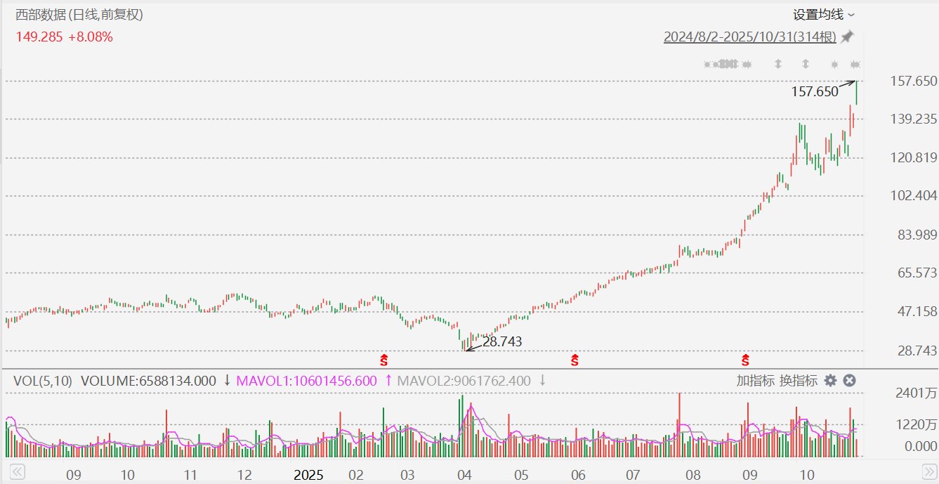 美股市场整体表现 - 10月31日美股集体高开,截至北京时间23:57,道指微跌0.01%,纳指和标普500指数小幅上涨 [1] 中概股表现 - 纳斯达克中国金龙指数由跌转涨短线拉升,收报8282.73点,上涨52.54点,涨幅0.64% [3][4] - 乐信股价飙涨27.27%至4.900美元 [3][4] - 奇富科技股价上涨16.02%至24.700美元 [3][4] - 阿特斯太阳能股价上涨13.04%至20.279美元 [3][4] - 信也科技股价上涨12.10%至6.255美元 [3][4] - 陆控股价上涨10.18%至3.085美元 [4] - 大全新能源股价上涨8.57%至32.040美元 [4] - 嘉银科技股价上涨8.53%至9.355美元 [4] - 晶科能源股价上涨7.90%至25.205美元 [4] 大宗商品市场 - 国际油价短线拉升,布伦特原油一度涨近1%,最高价达65.15美元,昨结64.37美元,上涨0.12美元,涨幅0.19% [4][5] - NYMEX WTI原油一度涨近1%,最高价达61.38美元,昨结60.57美元,上涨0.14美元,涨幅0.23% [6] - 现货黄金短线下跌,现跌破4020美元关口 [6] - 摩根士丹利预测黄金价格有望在2026年年中升至每盎司4500美元 [6] 加密货币市场 - 加密货币多数上涨,比特币重返11万美元关口,上涨2.81%至110,931.3美元 [7][8] - 以太坊上涨2.39%至3874.68美元 [7][8] - 狗狗币上涨3.14%至0.18697美元 [7][8] 亚马逊公司表现 - 亚马逊股价开盘大涨12.2%,市值一度骤增2742亿美元(约合人民币1.95万亿元) [9] - 第三季度营收同比增长13%至1802亿美元,高于分析师预期的1778亿美元 [11] - 亚马逊云服务部门销售额同比增长20%至330亿美元,创下2022年以来最大增幅 [11] - 净利润为212亿美元,较上年同期增长39% [11] - 预计第四季度营收在2060亿美元至2130亿美元之间,同比增长10%至13% [11] - 预计第四季度营业利润在210亿美元至260亿美元之间 [11] - 公司CEO安迪・贾西对AWS前景表示看好,预计购物聊天机器人鲁弗斯每年将为公司额外带来100亿美元销售额 [12] - 呼叫中心解决方案"Connect"年化营收有望突破10亿美元 [12] - AI模型市场"Bedrock"最终规模可能比肩亚马逊云业务的核心盈利支柱EC2 [12] 西部数据公司表现 - 西部数据股价盘初涨近8%,收报148.870美元,涨幅7.78% [13][14] - 2026财年第一财季营收同比增长27.4%至28.2亿美元,高于市场预期的27.3亿美元 [14] - 非公认会计准则每股盈利为1.78美元,比分析师预期高出12.9% [14] - 将第二财季营收预期上调至约29亿美元(上下浮动1000万美元) [15] - 将第二财季每股盈利预期上调至1.88美元(上下浮动15美分) [15] - 管理层将强劲业绩归功于人工智能和云数据需求,计划提高硬盘价格以应对旺盛需求 [15] - 摩根大通将公司目标价从94美元上调至175美元 [15]