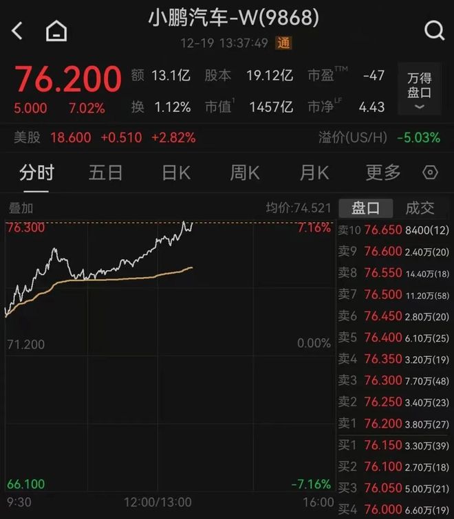 港股汽车股尾盘持续拉升,小鹏汽车涨幅扩大至超8%