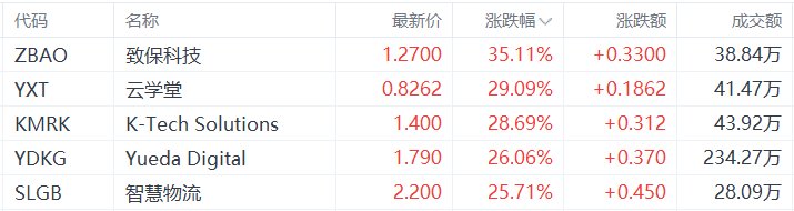 美股异动丨致保科技涨35.11%,为涨幅最大的中概股