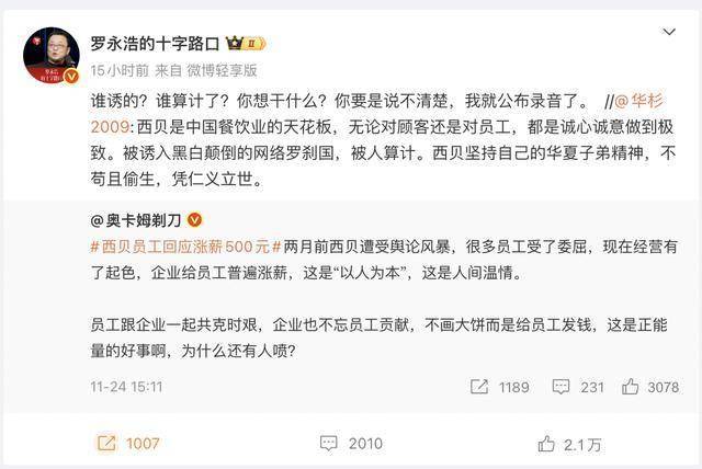 华与华创始人称西贝被算计,罗永浩回怼:必须公开道歉