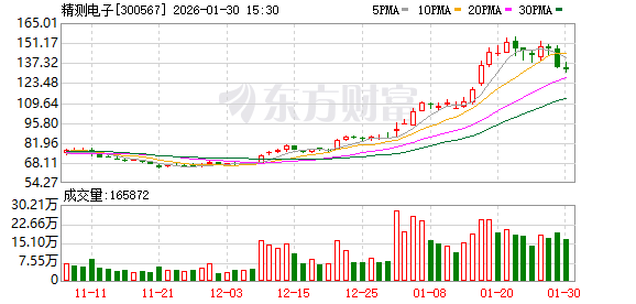 | 项目 | 本报告期 | 上年同期 | | --- | --- | --- | | 归属于上市 | 盈利: 8,000 万元-9,000 万元 | | | 公司股东的 | | 亏损:9,759.85 万元 | | | 比上年同期增长:181.97%-192.21% | | | 净利润 | | | | 扣除非经常 | 盈利: 2,165.70 万元-3,165.70 万元 | | | 性损益后的 | | 亏损:15,856. 12 万元 | | 净利润 | 比上年同期增长:113.66%-119.97% | | 1月30日晚间,半导体概念股精测电子(300567)发布2025年度业绩预告。该股近期股价大涨。 公司预计2025年归属于上市公司股东的净利润为8000万元—9000万元,同比扭亏为盈;预计2025年归属 于上市公司股东的扣非净利润2165.70万元—3165.70万元,同比增长113.66%—119.97%。 谈及业绩变动原因,精测电子对不同业务板块情况均做了分析:在半导体设备领域,报告期内,公司持 续巩固并提升在半导体量检测领域的国内领先地位,进一步加大了对先进制程领域(14nm及以下)的 研发投 ...