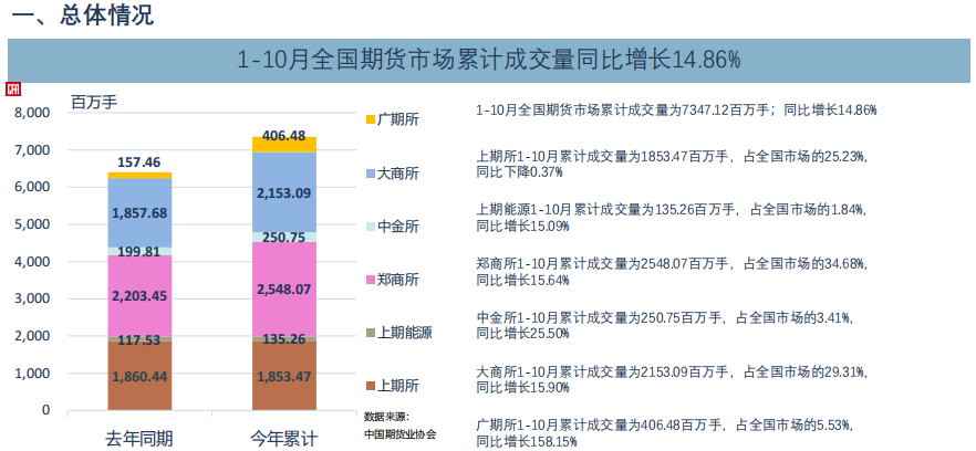 中国期货业协会:1-10月全国期货市场累计成交额增长21.82%
