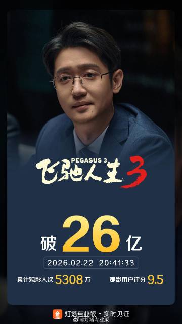 电影《飞驰人生3》票房表现 - 截至2月22日20时41分,影片《飞驰人生3》的累计票房已突破26亿元人民币 [1] 电影市场实时数据监测 - 灯塔专业版平台提供了电影票房的实时数据追踪服务 [1]