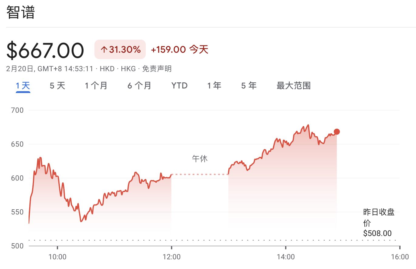 智谱尾盘涨幅一度扩大至37%,总市值突破3000亿港元