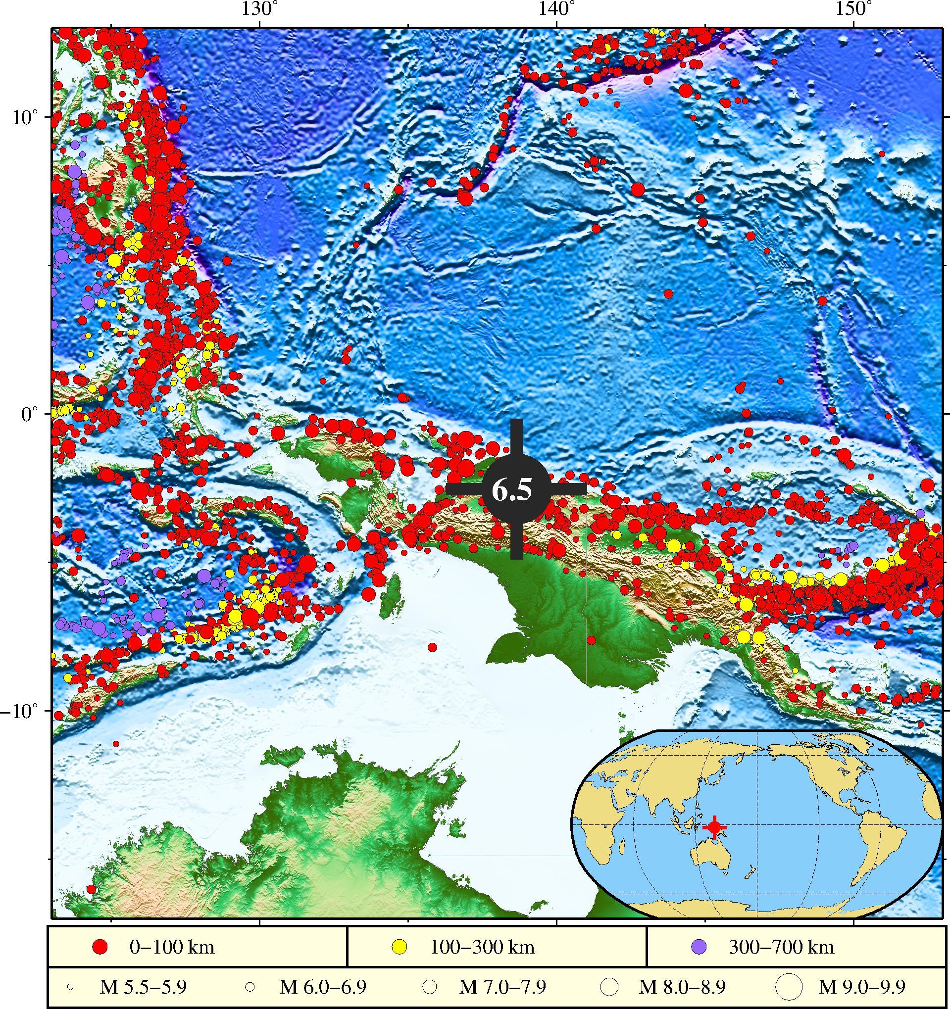 中国地震台网正式测定:10月16日13时48分,在印尼巴布亚省(南纬2.05度,东经138.85度)发生6.5级地震,震源深度10千米。 记者从自然资源部了解到,自然资源部海啸预警中心根据初步地震参数判断,地震可能会在震源周围引发局地海啸,但不会对我国沿岸造成影响。 130° ] 10° 0 6.5 —10° ...