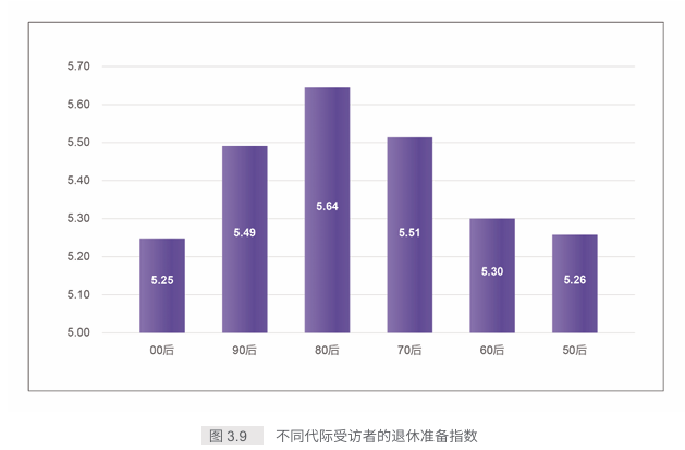 退休准备指数总体情况 - 2025年中国居民退休准备指数为5.49,较2024年的5.34略有上升 [1] - 指数数值低于6表明退休准备不足,需引起重视 [1] 退休准备指数构成维度分析 - 退休责任意识(7.45)和财务规划认知水平(7.36)两个维度得分显著提升 [2] - 财务问题理解能力得分为6.06,较上年的5.83略有上升 [2] - 退休计划完善度下降至3.82,退休储蓄充分度降至3.78 [2] - 整体呈现“认知提升、行为滞后”的明显特征 [2] 不同人群退休准备指数特征 - 高准备指数人群画像为:80后、已婚、自评健康状况良好、研究生学历、在国有企业及外商/港澳台商工作、个人收入与金融素养较高 [2] - 退休准备水平随年龄增长呈现“上升后趋稳”的态势 [2] - 80后群体退休准备指数达到相对高点,处于职业与家庭责任的“双重成熟期” [3][5] - 00后人群退休准备指数最低,90后群体得分有所上升但仍以短期财务目标为主,70后群体信心略显谨慎 [3][5] 养老金融产品偏好与建议 - 个人养老金产品偏好整体呈“养老储蓄>养老保险>养老理财>养老基金”的序列 [5] - 高收入与高退休准备群体对养老保险偏好强于养老储蓄 [5] - 建议推动退休准备测量在养老服务中的应用,完善多层次养老保障体系,增强个人养老金账户可及性与激励力度 [6] - 建议持续推动金融知识普及和退休规划教育,提升养老金融产品的组合效应 [6]