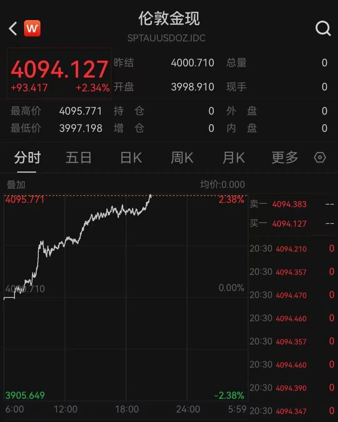 此外,COMEX白银持续走高,升破50美元/盎司,涨近4%,刷新近三周来高位。 | < W | COMEX白银 | | | | | | | | --- | --- | --- | --- | --- | --- | --- | --- | | | SI.CMX | | | | | | | | 50.020 | | 昨年 | 48.143 | 总手 | | | 3.39万 | | +1.877 | +3.90% 升篇 | | 48.295 | 现手 | | | 2 | | 最高价 | 50.060 | 特 仓 | 0 | 4 | | | 1.53万 | | 最低价 | 48.235 | | -10.23万 | 内 盘 | | | 1.87万 | | 分时 | 五日 | 日K | 周K | 月K | | 电子 | | | 叠加 | | | | 均价:49.343 | | | | | 50.060 | | | | -3.87% == | | 50.020 | 3 | | | | | | | | 50.015 | 1 | | | | | | | 7:18 | 50.035 | 7 | | | | | | | 7:18 ...