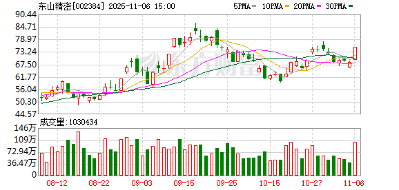 证券之星消息,11月6日军工电子板块较上一交易日上涨0.51%,华丰科技领涨。当日上证指数报收于 4007.76,上涨0.97%。深证成指报收于13452.42,上涨1.73%。军工电子板块个股涨跌见下表: | 代码 | 名称 | 收盘价 | 涨跌幅 | 成交量(手) | 成交额(元) | | --- | --- | --- | --- | --- | --- | | 688629 | 华丰科技 | 78.43 | 6.20% | 18.19万 | 14.03亿 | | 688011 | 新光光电 | 41.20 | 5.10% | 2.79万 | + 1.14亿 | | 300726 | 宏达电子 | 44.78 | 5.04% | 13.82万 | 6.15亿 | | 688776 | 国光电气 | 98.38 | 3.71% | 6.10万 | 5.96亿 | | 688439 | 振华风光 | 59.46 | 2.78% | 5.07万 | 3.02亿 | | 600590 | 泰蒙科技 | 9.64 | 2.66% | 40.38万 | 3.89亿 | | 688053 | ST思科瑞 | 29.7 ...