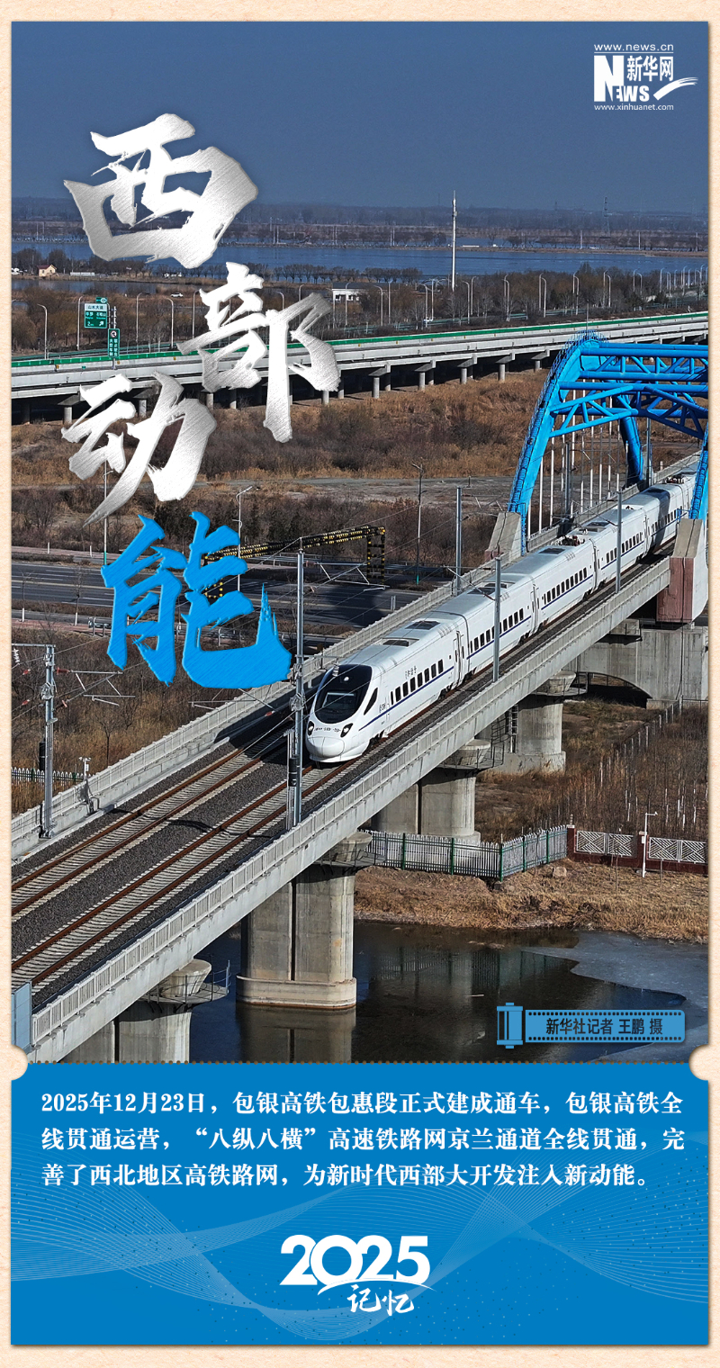 回顾2025年,从科技领域的创新突破,到重大工程建设迈出坚实步伐,再到生活中那些令人温暖、感动的瞬 间,这一年,许许多多画面都成为我们共同的记忆,为我们增添了不断前行的力量。今日让我们一起回顾2025年 那些印象深刻的重大工程。 2025年12月23日,包银高铁包惠段正式建成通车,包银高铁全 线贯通运营,"八纵八横"高速铁路网京兰通道全线贯通,完 善了西北地区高铁路网,为新时代西部大开发注人新动能。 18年 C9305 _两安北 www.news.cn KK 网 III ( 1 = Not of 781 - UIT 新华社记者 丁磊 摄 新疆是我国西电东送的重要送端。多条"疆电外送"通道把电 量从新疆源源不断输送到中东部地区,能有效服务西部大开 发,有效促进新疆打造全国重要的新能源基地和资源优势转 化,助力相关地区的经济增长和区域协调发展。 新华社记者 杨世尧 摄 2025年12月26日,西安至延安高速铁路正式开通运营,革命 圣地延安迈人"高铁时代"。线路全长299公里,设计时速 350公里,是目前穿越黄土高原设计时速最高的铁路。 贵州花江峡谷大桥于2025年9月28日正式建成通车。大桥全长 2890米,主跨 ...