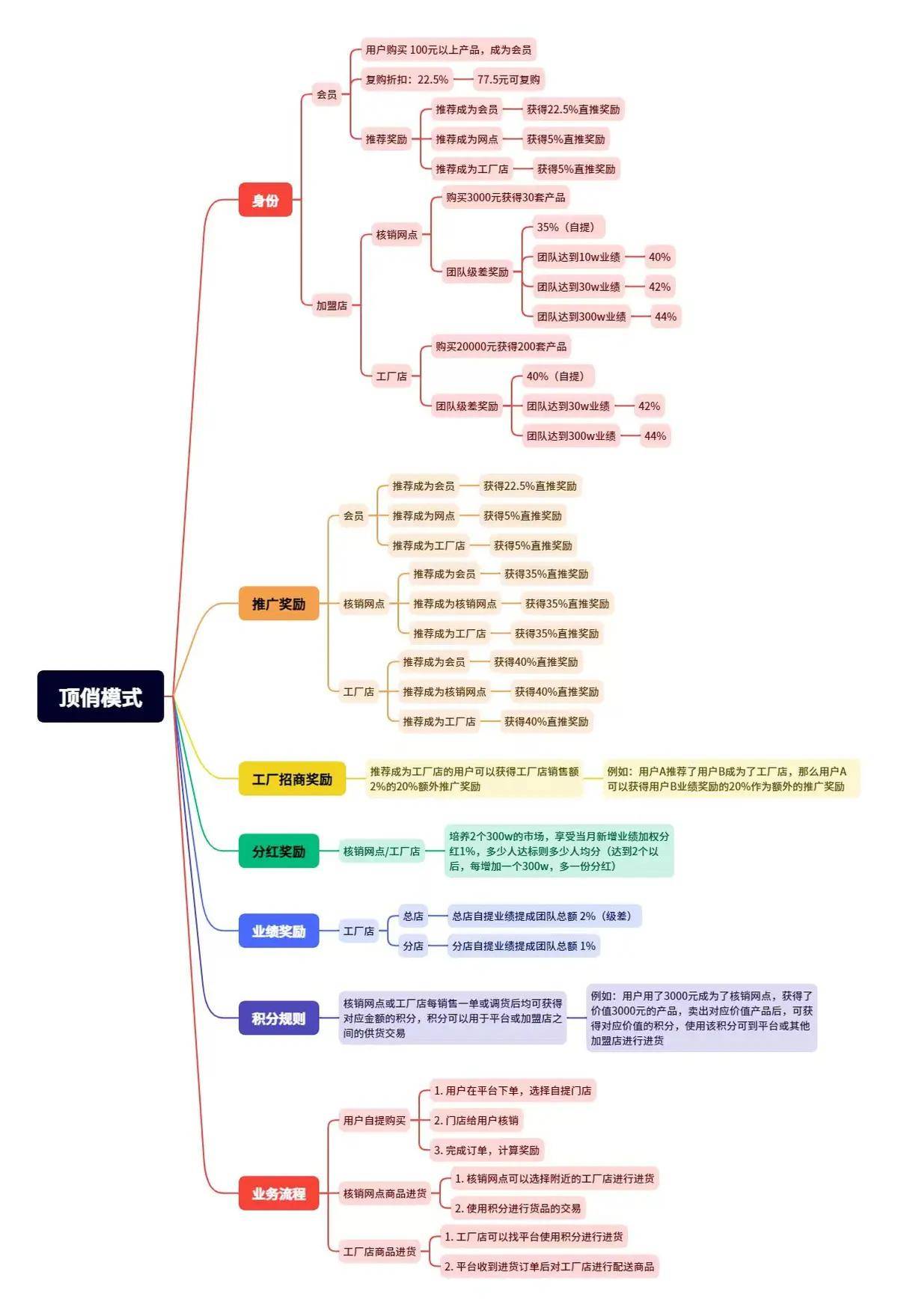 大家好,我是微三云阿奔,一家软件开发公司的负责人,专注于模式设计12年+私域电商平台方案设计。 2024年,湖南顶俏生物凭借"消费+分销+股权"三层裂变模式在下沉市场迅速崛起。其通过"100元购8瓶洗衣液,推荐返利"的营销策略,快速吸纳10万会员, 业务覆盖1038个县城。该企业自诩为"洗衣液黑马",构建了阶梯式身份升级体系,包括消费层(100元入门)、核销网点(3000元投资)、工厂店(2万元区 域代理),形成了"低门槛参与-高回报诱惑"的裂变机制,并宣称"2025年营收破亿"。本文将深入剖析其商业模式及潜在隐忧。 (三)股权激励计划:长期绑定核心 顶俏生物承诺将40%股权分配给优秀经销商,条件为培育两个300万元市场且合规经营满1年。该机制维系头部参与者持续投入,如经销商李某获股权后月收 入3万元,晋升决策层。 消费层推荐一单获22.5元佣金,适合兼职群体;网点层推荐新网点获1050元,推荐工厂店获7000元,吸引小微企业主;工厂店推荐新工厂店获8000元,享区 域销售2%分红,针对团队领导者。多层级奖励设计助早期参与者快速盈利,如团队长王某率500人团队月均收入超8万元。 (二)团队分红机制:协作提升业 ...