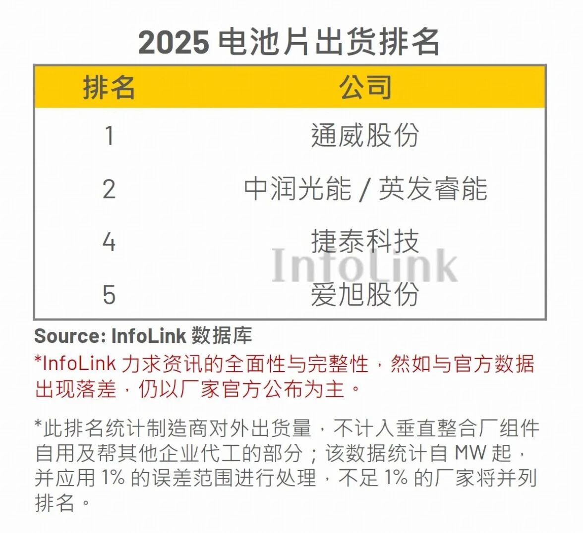 2025年前五大电池片供货商的全球总出货量195GW,通威股份连续九年蝉联第一