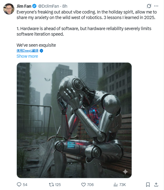 英伟达机Jim Fan:机器人领域还处于混乱状态,连发展方向都有可能是错的