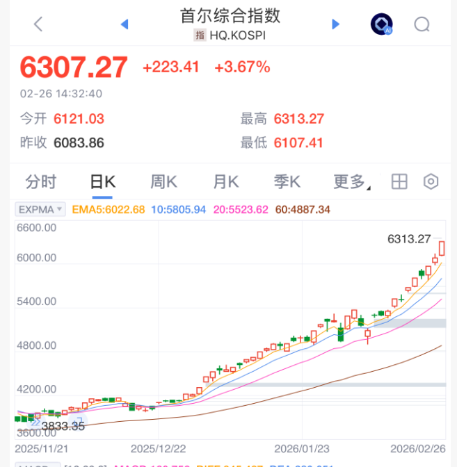 沸腾了!韩国股市突破6300点!