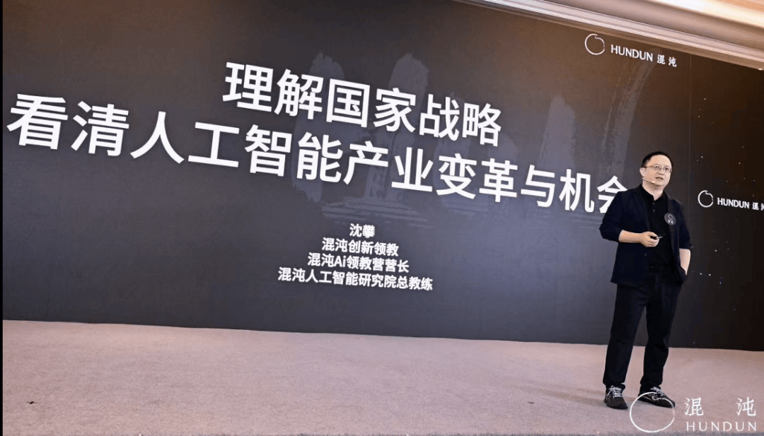 "我们这一代人,幸运的站在时代浪尖上,一边是AI变革世界的澎湃动能,一边是大国复兴的铿锵步伐。" "历史不会通知你正在发生,但它会回头问你:那一刻,你在做什么?" "顺大势才能成大事!" 面对人工智能这一历史性的战略机遇,每一个创业者和企业决策者都必须回答:我们该如何理解国家政策?又该如何找准自身生态位,避免在时代大变局 中错失良机? 混沌创新领教、混沌AI领教营营长、混沌⼈⼯智能研究院总教练沈攀老师,深度研究中国经济和宏观政策,解读十四五规划,产业新机会。对AIGC提升 业务能力有深入实践,在混沌 app 上线"AIGC提升业务能力15讲",广受好评。同时,辅导多家企业AI在企业中的落地。其在混沌app上的课程《企业落地 AI全局》彻底打通学员认知,被同学评价为:"开天窗式的讲解,值得多听几遍","贴合实践,又极具高度"。 11月1日,沈攀老师在江阴飞马水城带来了《理解国家战略,看清⼈⼯智能产业变⾰与机会》,以下是演讲精华: 新的范式已经到来 如果把时针拨回十年前,我们会发现一个影响深远的时代刚刚拉开序幕。 不妨一起回到2015年,那是移动互联网起步的阶段。可以说,中国消费市场过去的二十年,是由互联网驱动的 ...