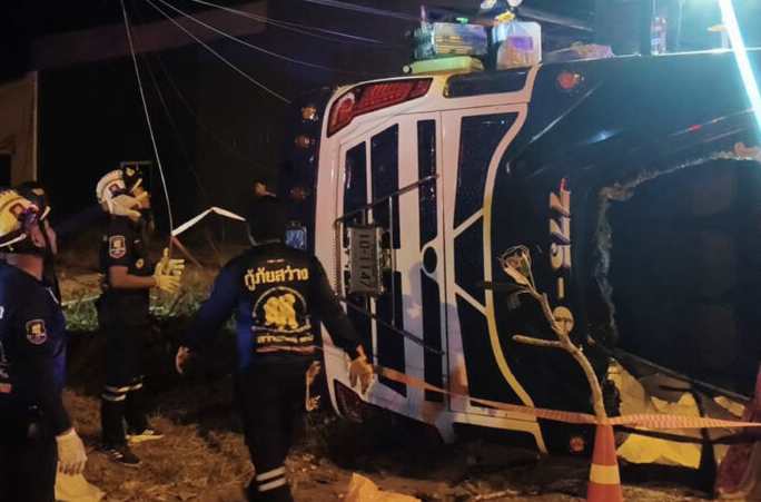 泰媒:泰国一辆双层巴士深夜发生侧翻事故,致数十人受伤