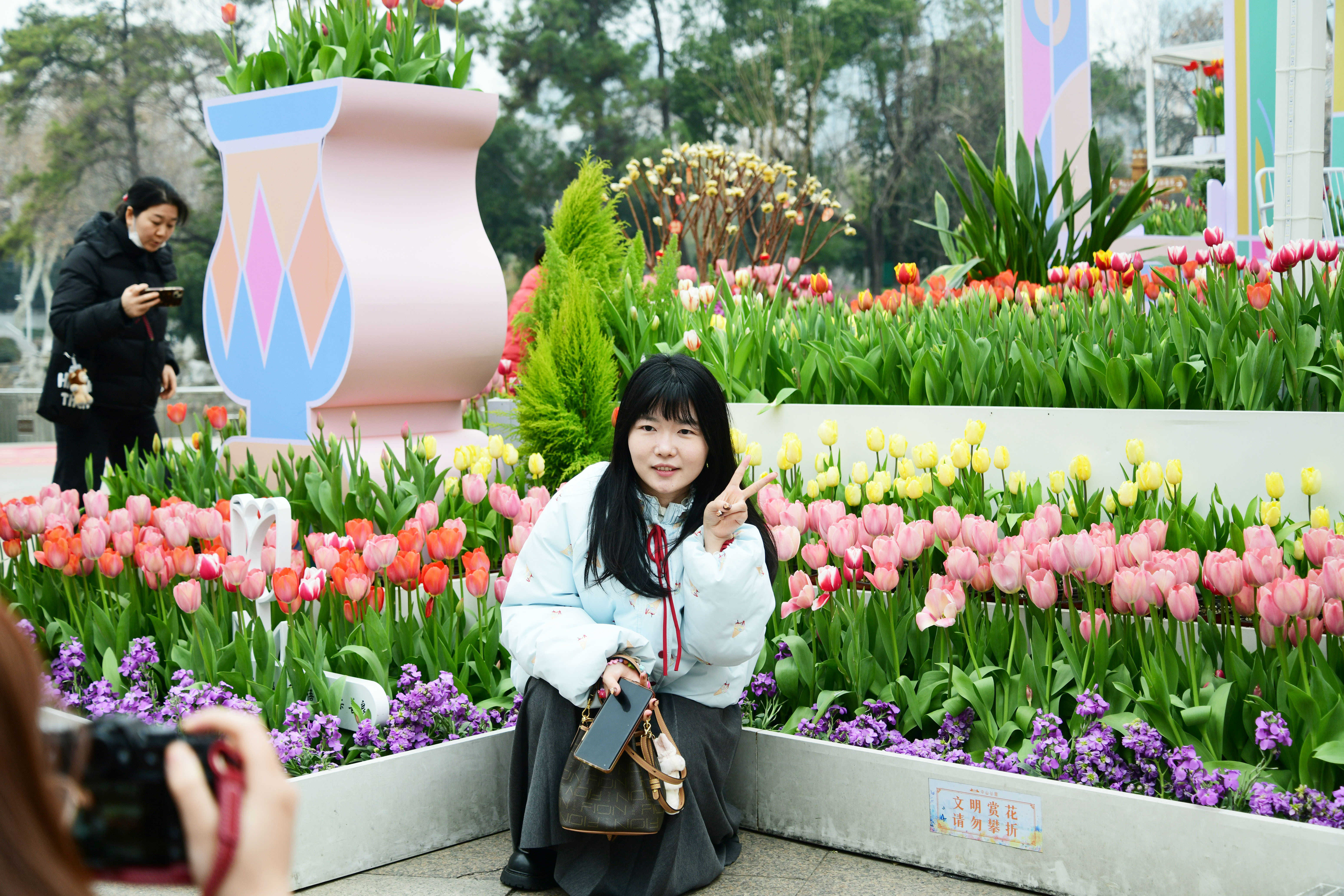中山公园新春郁金香花展 - 2月15日,中山公园举办新春郁金香花展,吸引众多市民前来游玩 [1] - 本次花展共展出两万余株不同品种的郁金香 [1] - 园区内蜡梅与各色梅花也同时绽放,营造出浓厚的春天气息 [1]