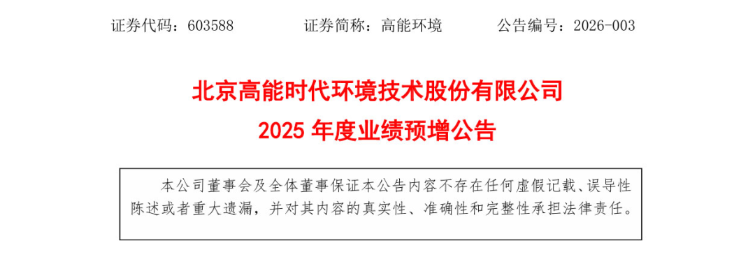 作者:伏波望族 这意味着,2025年,高能环境在净利润方面打了一个"翻身仗",终于结束了连续3年"增收不增利"的尴尬历史。 之所以能够实现翻盘,除了公司自身技术升级、产能释放的因素外,也与外部金属价格持续上行有关。近期,国际局势持续动荡,导致金属价格集体上 涨,极大地提升了高能环境固危废资源化产品的盈利能力。 这是环保类上市公司发布的首个2025年业绩预告。 1月7日,北京高能时代环境技术股份有限公司(下称"高能环境")发布2025年度业绩预增公告。据财务部门初步测算,高能环境2025年度预计实现归属于 上市公司股东的扣除非经常性损益的净利润(简称"扣非净利润")7.5亿元-9亿元,相比上一年增长了131.63%-177.95%。 ▼图片来源:高能环境 1 扣非净利润增长177.95% 高能环境"赚翻了" 2026年刚开年,高能环境就"迫不及待"地发布了自己的2025年业绩预告,成为环保行业"第一个吃螃蟹的人"。 能够如此早地发布预告,也充分说明了公司对于自身业绩的信心。 预告显示,经财务部门初步测算,公司预计2025年度实现归母净利润7.5亿元-9亿元,相比上年同期增加约2.68亿元-4.18亿元,增幅55 ...