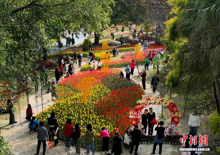 (新春走基层)桂林訾洲郁金香盛放 花海迎春年味浓