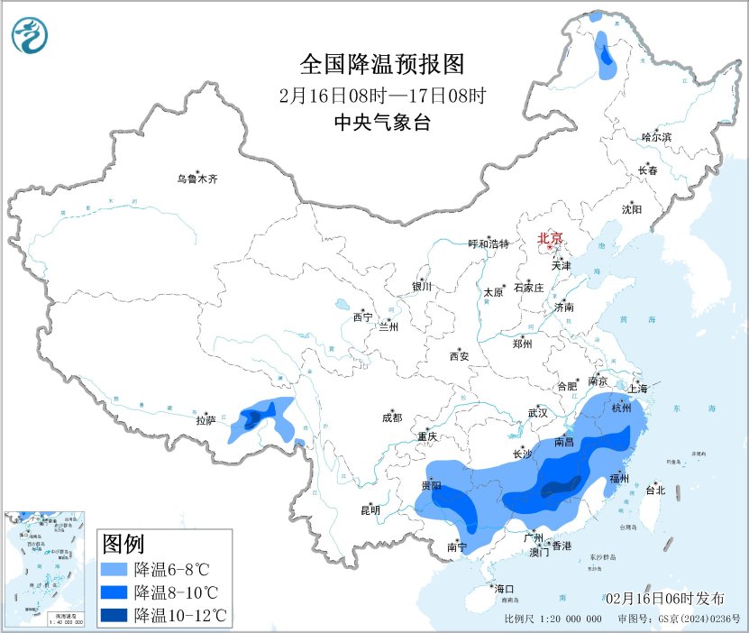寒潮预警核心信息 1. 中央气象台于2月16日06时继续发布寒潮蓝色预警[1] 2. 预计2月16日08时至2月17日08时,江南中南部和东部、贵州东南部、华南北部和西部等地将先后降温6~8℃[1] 3. 江西南部、福建西南部、广东北部等地部分地区降温幅度可达10℃[1] 4. 预计2月17日凌晨最低温度0℃线将南压至江淮至江汉中部一带[1] 对相关行业的影响与应对 1. 政府及有关部门需按照职责做好防寒潮准备工作[4] 2. 建议公众注意添衣保暖[4] 3. 需对热带作物、水产品采取一定的防护措施[4] 4. 需做好防风准备工作[4]