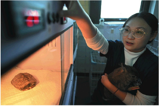 文/片/视频 记者 王媛 济南报道 "它的眼睛角膜溃疡了,属于细菌感染。我给你开一个角膜修复的眼药水回去给它滴上吧!"12月17日晚上7 点多,在济南花园东路单大夫动物医院门诊室内,一个年轻女孩带着一只鹦鹉前来看病,这只鹦鹉的眼睛已 经红肿得睁不开了。正在值班的异宠医生谭艺对鹦鹉的眼睛进行角膜荧光染色检查后得出诊断,并悉心 地嘱咐女孩回去如何用药。 Capit M F 今年27岁的谭艺个子不高,白白净净,说起话来轻轻柔柔的,典型的南方女孩。谭艺老家在贵州遵义,大学读 的是动物医学专业。毕业后她去了上海一家异宠医院实习,开启了她的异宠医生职业生涯,如今已经工作 了五个年头。异宠顾名思义就是不同于猫狗这种传统宠物,属于另类宠物,涵盖爬行动物、节肢动物、小 型哺乳动物及鸟类等类别。"我老家在贵州嘛,大山里蛇还是比较多的,所以我从小就不怕蛇啊鼠啊之类 的。"谭艺笑着说。 今年3月份,谭艺只身一人来到济南,加入单大夫动物医院,为济南的异宠们看病。"天上飞的,地上爬的水里 游的,我看过的病号形态各异、五花八门。"谭艺笑着说,现在家里养的比较普遍的异宠就是蛇类、兔子、 鸟类、龟类和鼠类。但是也会有不常见的,比如她曾经给只有 ...