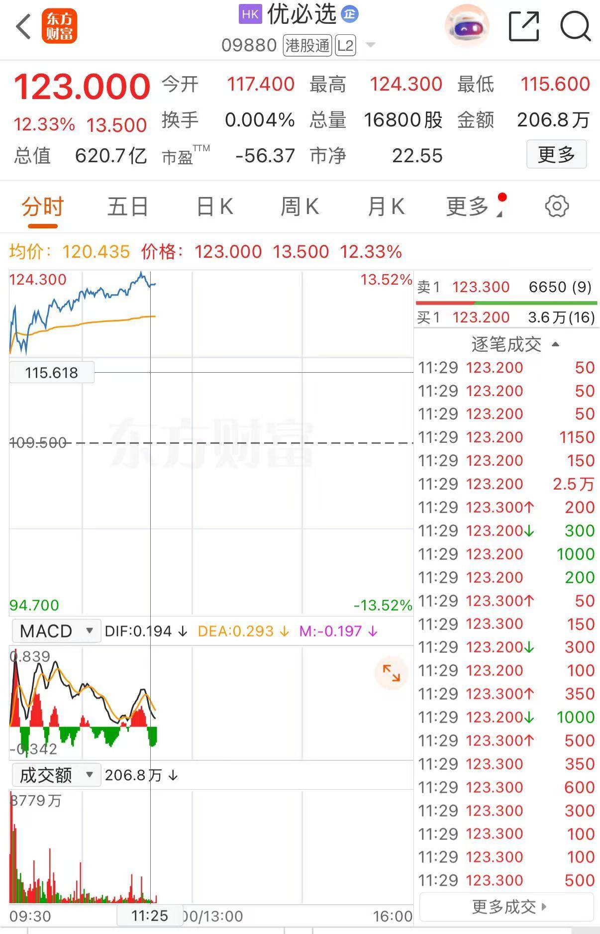 12月29日,港股多只机器人概念股表现活跃。其中,优必选早盘一度涨超13%,最高报124.3港元/股。截至11时25分,越疆涨12.9%,优必选涨12.33%,三花 智控H股涨4.84%。 上证报中国证券网讯(记者 孔令仪)12月29日,港股多只机器人概念股表现活跃。其中,优必选早盘一度涨超13%,最高报124.3港元/股。截至11时25分, 越疆涨12.9%,优必选涨12.33%,三花智控H股涨4.84%。 | HK 广州元元 | | | | | --- | --- | --- | --- | | 09880 港股通 L2 ▼ | | | | | 117.400 最高 124.300 最低 123.000 37 | | | 115 | | 0.004% 总量 16800股 金额 12.33% 13.500 快手 | | | 20€ | | 总值 620.7亿 市盈 -56.37 市净 | 22.55 | | Vm | | 分时 周长 目K 五日 | | 更多, | | | 均价:120.435 价格:123.000 13.500 12.33% | | | | | 124.300 | | 13.52% 卖 1 ...