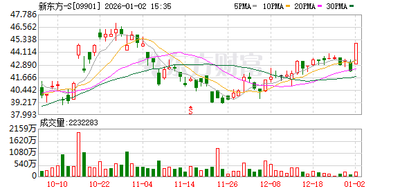 公司股价表现 - 新东方-S(09901.HK)股价在尾盘交易时段上涨超过6% [2] - 截至发稿时,股价上涨6.44%,报收于44.98港元 [2] - 当日成交额为9246.43万港元 [2]