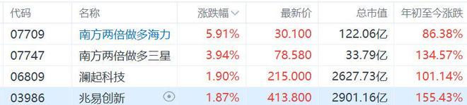 港股异动丨存储概念走强,南方两倍做多海力涨近6%,南方两倍做多三星涨近4%