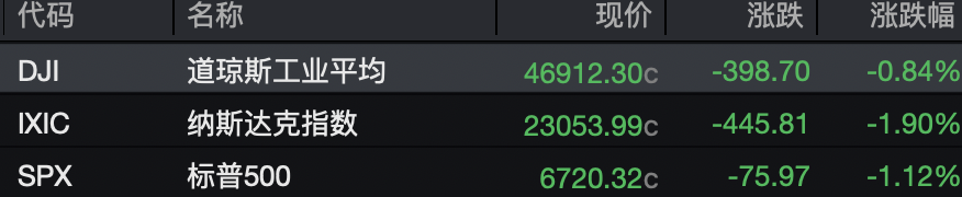 美股市场表现 - 美股三大指数集体收跌,纳斯达克指数下跌1.9%至23053.99点,标普500指数下跌1.12%至6720.32点,道琼斯工业平均指数下跌0.84%至46912.30点 [1][2][3] - 大型科技股普遍下跌,英伟达和特斯拉跌幅均超过3%,英特尔、亚马逊、Meta跌幅超过2%,微软跌超1%且连续七个交易日下跌,创2022年以来最长连跌天数 [3] - 特斯拉股价下跌超3%,但盘后因股东批准首席执行官马斯克价值1万亿美元的薪酬协议而一度回升 [1][3] 人工智能行业影响 - 人工智能加速美国就业市场降温,10月份美国企业宣布裁员15.3万人,创2003年以来10月裁员人数新纪录,裁员人数同比增长175%,环比增长183% [3] - 截至2025年10月底,美国企业年内宣布裁员人数超过109.9万人,同比增长65%,创2020年以来新纪录 [3] - OpenAI首席财务官关于构建由私募基金、银行及联邦政府“兜底”生态系统的言论引发误解,随后公司CEO澄清不寻求政府为数据中心提供担保,而是建议美国政府建立“国家战略算力储备” [3][4] 特斯拉公司动态 - 特斯拉股东以75%的多数票通过了马斯克的薪酬方案,支持其将公司转变为人工智能和机器人巨头的愿景 [5] - 马斯克的薪酬计划包含12项运营目标,包括销售1200万辆电动车和卖出100万个人工智能机器人,每完成一项可获得约占特斯拉市值1%的股票,全部完成可获市值12%的股票,最高价值1万亿美元 [5] - 马斯克需在10年内带领特斯拉市值迈过2万亿美元门槛且累计交付2000万辆汽车才能获得薪酬,欲拿满奖励需使公司市值超过8.5万亿美元 [5] - 特斯拉股东投票通过授权董事会投资马斯克的人工智能初创公司X.AI的提案,但多数股东选择弃权 [5] 中概股市场表现 - 纳斯达克中国金龙指数微跌0.03%,热门中概股涨跌互现 [4] - 小鹏汽车股价上涨超9%,公司通过直播方式澄清其人形机器人IRON“藏人”的质疑 [4] - 亿咖通股价上涨超10%,盛大科技、百度上涨超3%,阿里巴巴、极氪上涨超1% [4] - 小马智行股价下跌超8%,再鼎医药下跌超6%,金山云、名创优品下跌超3% [4] 美联储政策动向 - 阿布扎比第一银行分析师指出,美国政府“停摆”及官方数据发布中断可能使美联储12月暂停降息 [6] - 美联储理事米兰预计美联储将在12月降息,倾向于以每次50个基点的幅度达到中性利率,而许多同事希望以每次25个基点的幅度调整 [6] - 克利夫兰联储主席哈马克认为当前通胀过高,利率水平“几乎不具限制性”,暗示进一步降息可能过早 [6] - 纽约联储主席威廉姆斯表示市场对“中性利率”的估算可能偏高,美联储仍有降息空间而不削弱抑制通胀力度,但未明确表态是否支持12月降息 [7]