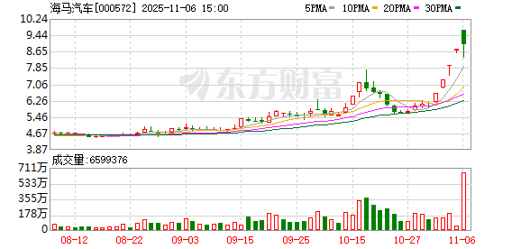 证券时报·数据宝统计显示,上榜的前五大买卖营业部合计成交14.17亿元,其中,买入成交额为7.80亿 元,卖出成交额为6.37亿元,合计净买入1.44亿元。 卖五 东方财富证券股份有限公司拉萨团结路第一证券营业 部 具体来看,今日上榜的营业部中,共有2家机构专用席位现身,即卖二、卖三,合计买入金额3228.02万 元,卖出金额1.01亿元,合计净卖出6908.68万元,深股通为第一大买入营业部及第一大卖出营业部,买 入金额为4.20亿元,卖出金额为3.63亿元,合计净买入5639.90万元。 (文章来源:证券时报网) 近半年该股累计上榜龙虎榜8次,上榜次日股价平均涨2.90%,上榜后5日平均跌0.56%。 5048.70 4419.53 资金流向方面,今日该股主力资金净流出7.57亿元,其中,特大单净流出3.45亿元,大单资金净流出 4.12亿元。近5日主力资金净流出3.72亿元。(数据宝) 海马汽车11月6日交易公开信息 海马汽车今日上涨2.39%,全天换手率40.18%,成交额60.06亿元,振幅16.23%。龙虎榜数据显示,机构 净卖出6908.68万元,深股通净买入5639.90万元,营业部席位合计净 ...