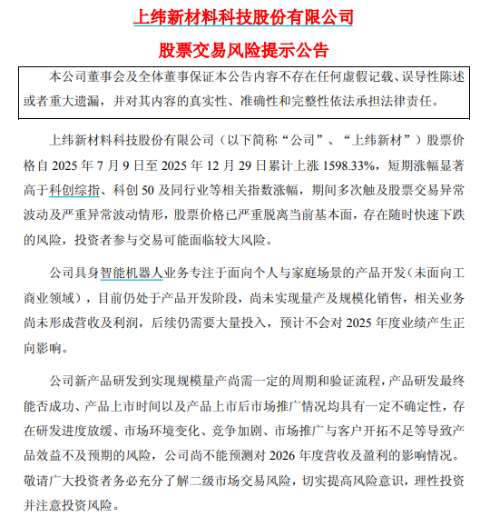 今年股价大涨近1900%,大牛股公告:存在随时快速下跌风险