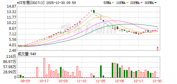 近日该股表现 *ST东易再度涨停,7个交易日内录得4个涨停,累计涨幅为-14.07%,累计换手率为47.30%。截至9:25, 该股今日成交量2.90万股,成交金额24.76万元,换手率0.01%。最新A股总市值达81.35亿元,A股流通 市值35.18亿元。 | 日期 | 当日涨跌幅(%) | 换手率(%) | 主力资金净流入(万元) | | --- | --- | --- | --- | | 2025.12.26 | 1.01 | 8.42 | -1753.91 | | 2025.12.25 | 5.01 | 5.76 | 3678.88 | | 2025.12.24 | -0.48 | 6.50 | 1344.95 | | 2025.12.23 | -5.01 | 8.87 | -4875.34 | | 2025.12.22 | 4.98 | 10.82 | -3580.83 | | 2025.12.19 | 5.03 | 6.91 | 973.96 | | 2025.12.18 | 2.05 | 7.92 | -297.57 | | 2025.12.17 | 0.83 | 9.80 | 1784.41 ...