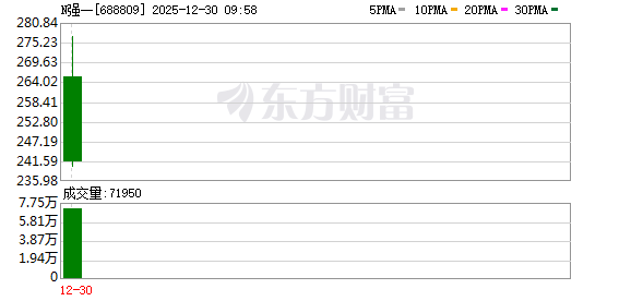 N强一今日上市,开盘价265.60元,上涨212.14%。 公司主营业务为探针卡的研发、设计、生产与销售。 证券时报·数据宝统计显示,公司本次发行总量为3238.99万股,其中,网上发行量为1036.50万股,发行 价格为85.09元/股,发行市盈率48.55倍,行业平均市盈率57.92倍,网上发行有效申购户数为668.46万 户,网上发行最终中签率为0.02295383%。公司首发募集资金27.56亿元,募集资金主要投向南通探针卡 研发及生产项目、苏州总部及研发中心建设项目等。(数据宝) 近期上市新股首日表现 | 代码 | 简称 | 上市日期 | 发行价 | 发行市盈率 | 首日开盘涨跌幅 | 所属行业 | | --- | --- | --- | --- | --- | --- | --- | | | | | (元) | (倍) | (%) | | | 688809 | N强一 | 2025.12.30 | 85.09 | 48.55 | 212.14 | 电子 | | 001369 | N双欣 | 2025.12.30 | 6.85 | 16.19 | 186.13 | 基础化工 | | 001396 | ...