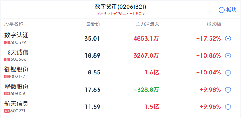 12月30日,指数低开高走,深成指、创指双双翻红;截至9:40,沪指跌0.29%,深成指涨0.27%,创指涨0.53%。 盘面上,数字货币概念领涨两市,翠微股份2连板;半导体、AI智能体等概念涨幅居前。下跌方面,贵金属板块大 面积低开,零售、免税、纺织制造等消费板块调整居前。 光大证券指出,场内资金分歧明显,但考虑到4000点已经近在眼前,多头或将推动沪指继续向4000点震荡上行, 同时,热点轮动的风格大概率将延续。 2、AI智能体概念盘初活跃 早盘AI智能体概念活跃,酷特智能涨超10%,正和生态、立方控股、南兴股份、蓝色光标、鼎捷数智跟涨。 点评:消息面上Meta以数十亿美元收购开发AI应用Manus的公司蝴蝶效应。 热门板块 1、数字货币概念反复活跃 数字货币概念反复活跃,翠微股份2连板,恒宝股份、楚天龙、拉卡拉、数字认证、证通电子跟涨。 点评:消息面上,央行发布数字人民币行动方案,明年1月1日起正式实施。东北证券数经团队认为,发展数字人 民币的意义本质是通过区块链技术将贸易效率转化为战略筹码,其发展节奏将深度绑定国家竞争核心利益。 | | | 数字货币(02061321) 1668.71 +29.47 ...