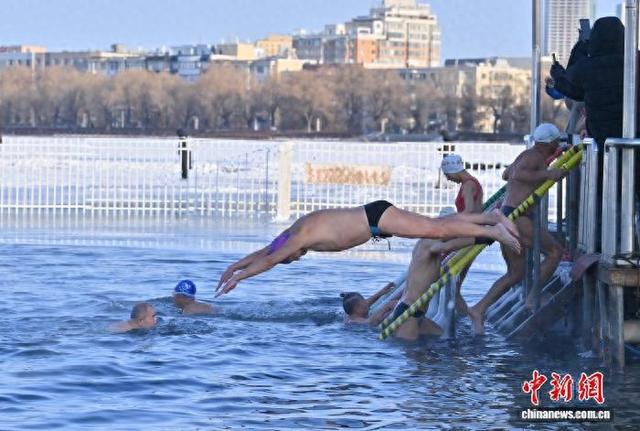吉林长春:冬泳爱好者冰湖畅游迎新年